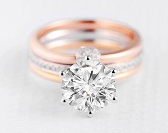 Moissanite Engagement Ring Set Unique Crown Tiara Wedding Ring Etsy Unique Stackable Wedding Rings