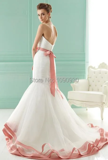 2015 New Elegant Sweetheart Mermaid Wedding Dresses Flower Sash Unique Wedding Dresses With Color Accents