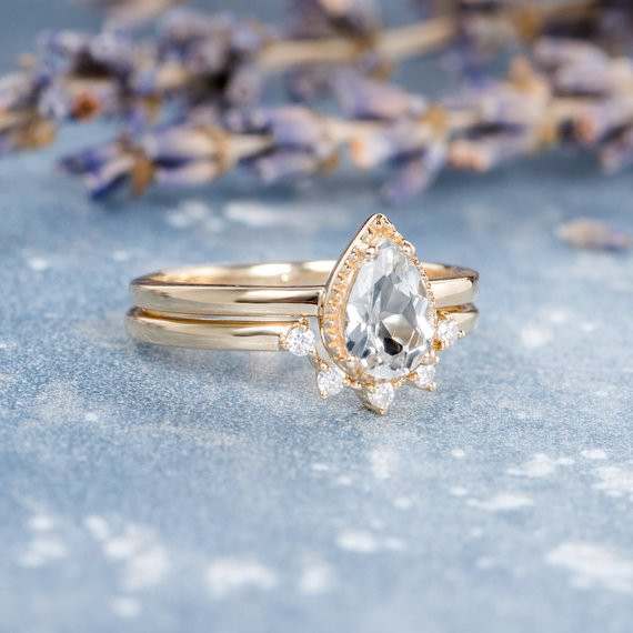 7 9mm Oval Cut Aquamarine Unique Engagement Ring Set Unique Wedding Ring Sets