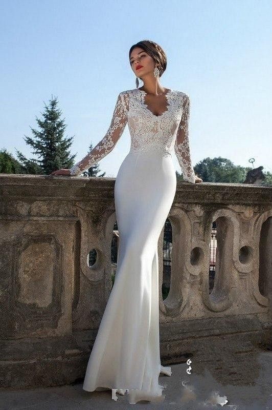 Sexy Elegant Mermaid Wedding Dresses With Long Sleeves V Neck V Neck Elegant Long Sleeve Wedding Dress