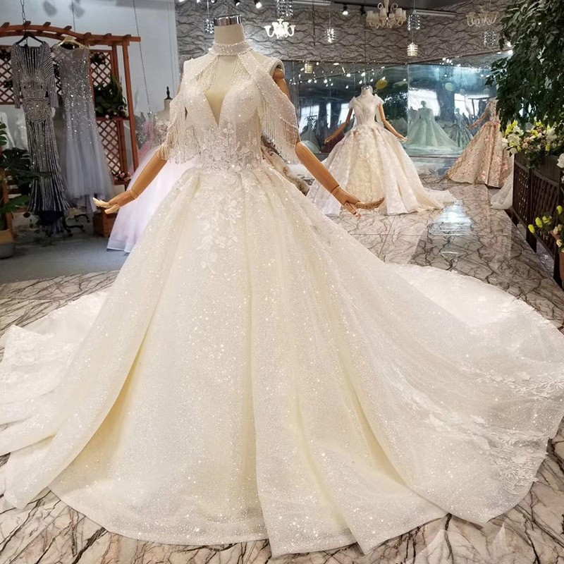 High Collar Tassel Word Shoulder Vibrating Champagne Bride Retro Court Tail Wedding Dress V Neck Trailing Palace Court Y Shopee Malaysia V Neck High Collar Wedding Dress