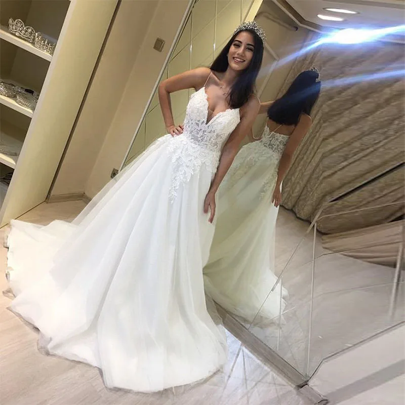Ashley Carol Illusion Wedding Dress Custom Sexy V Neck Long Sleeve V Neck Illusion Wedding Dress