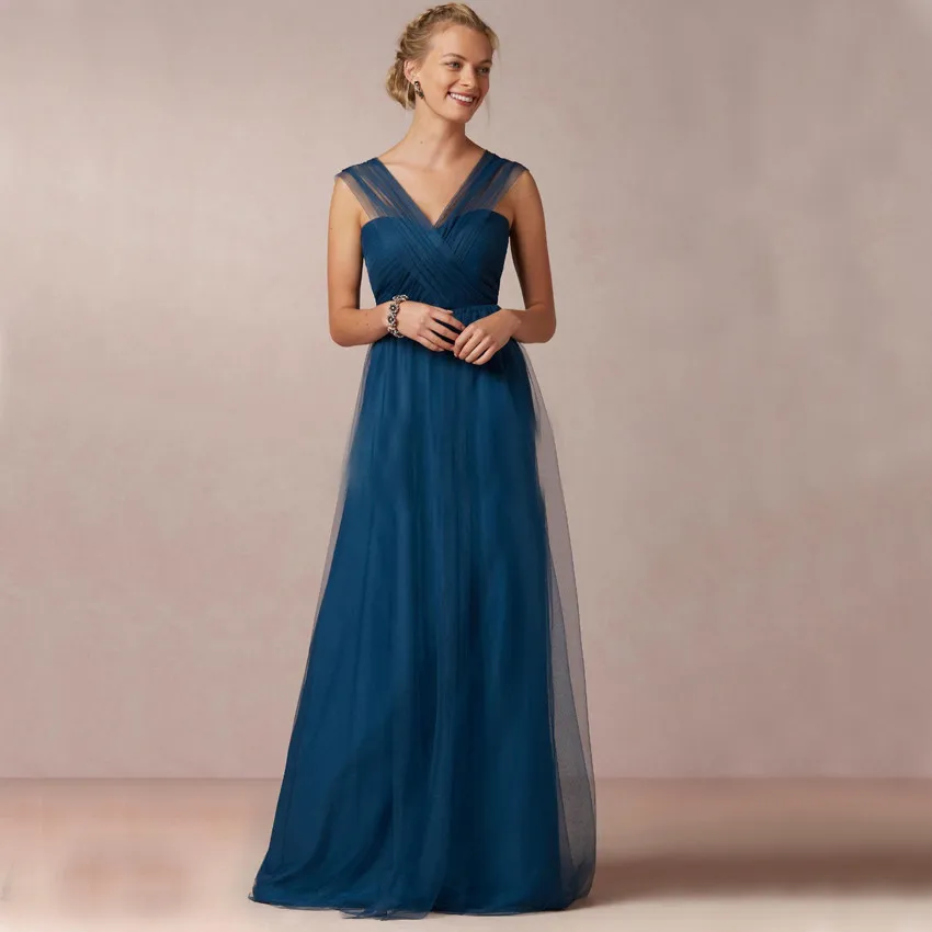 Hot Summer Blue Long Bridesmaid Dresses Simpletulle V Neck Criss V Neck Wedding Guest Dress Uk