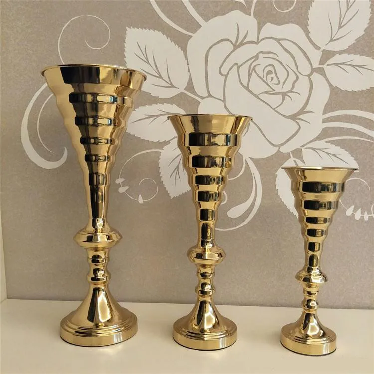 Newest Hot Sell Gold Slim Metal Flower Vases Trumpet Vases Centerpieces Flower Stand For Wedding Home Decoration Aliexpress Com Imall Com Vases Centerpieces Weddings