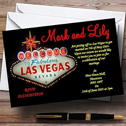Las Vegas Sign Fabulous Personalised Wedding Invitations Amazon Vegas Wedding Invitation Wording