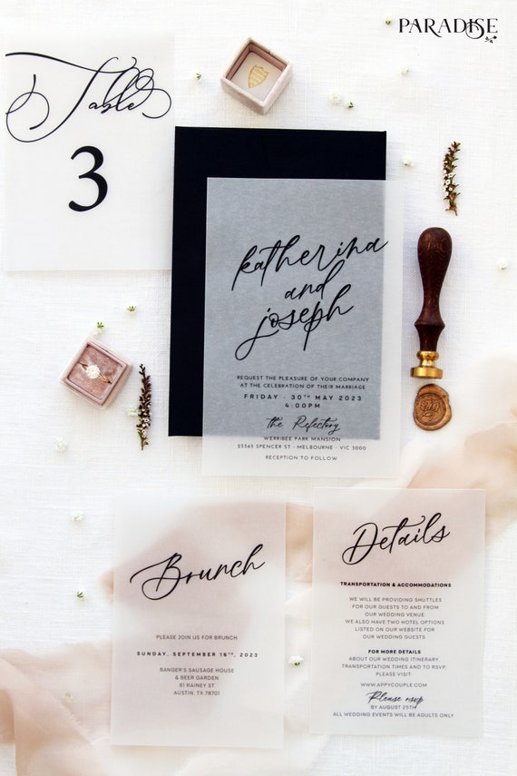 Kamille Vellum Wedding Invitation Set Elegant And Modern Etsy Vellum Wedding Invitation Kits