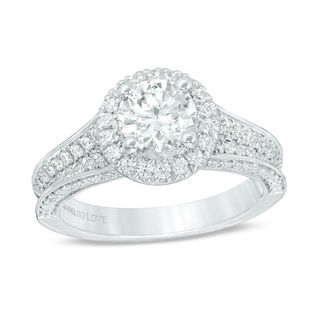 Vera Wang Love Collection 1 1 3 Ct T W Emerald Cut Diamond Double Frame Engagement Ring In 14k White Gold Vera Wang Love Zales Vera Wang Wedding Rings Zales