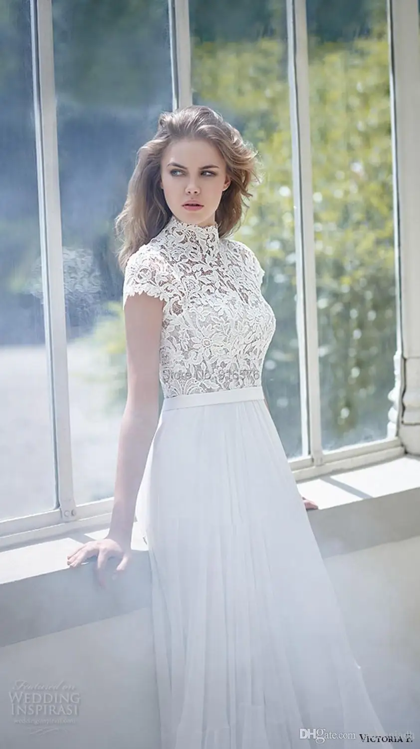 Discount Vintage Victoria Style Wedding Dress High Collar Sheer Victorian High Collar Wedding Dress