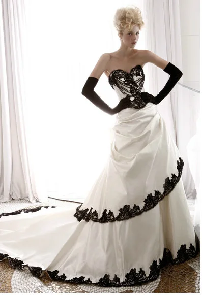 Vintage Black And White Gothic Ball Gowns Wedding Dresses Hot Sale Victorian Wedding Dress Gothic