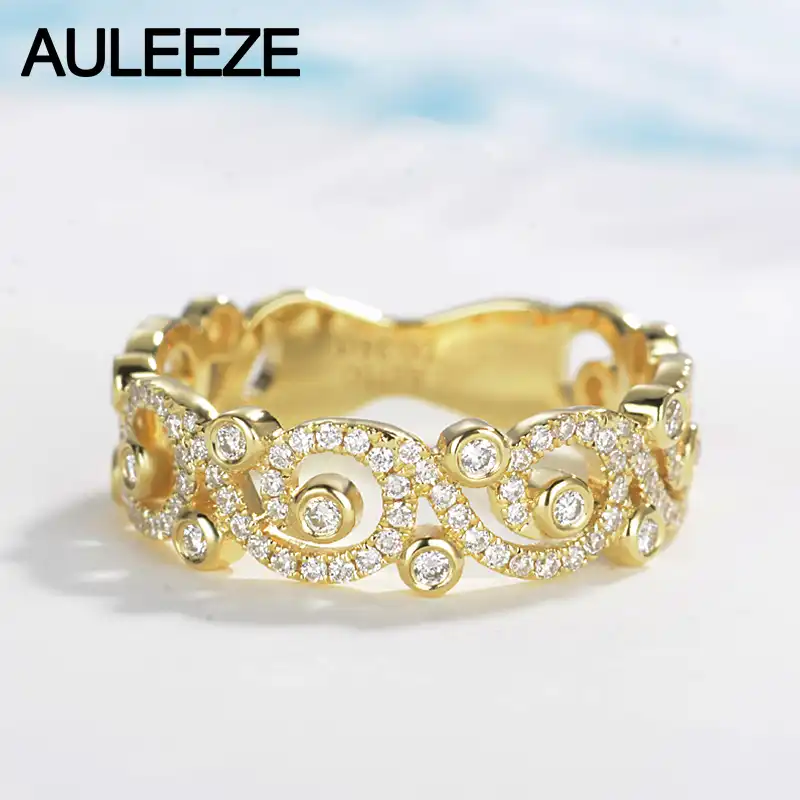 Auleeze Romantic 18k Yellow Gold Bands Real 0 34cttw Natural Vine Wedding Rings