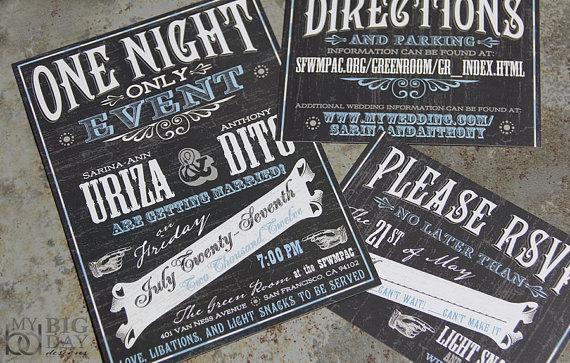 Chalkboard Wedding Invitation Set Modern Wedding Invite Rustic Vintage Chalkboard Wedding Invitations