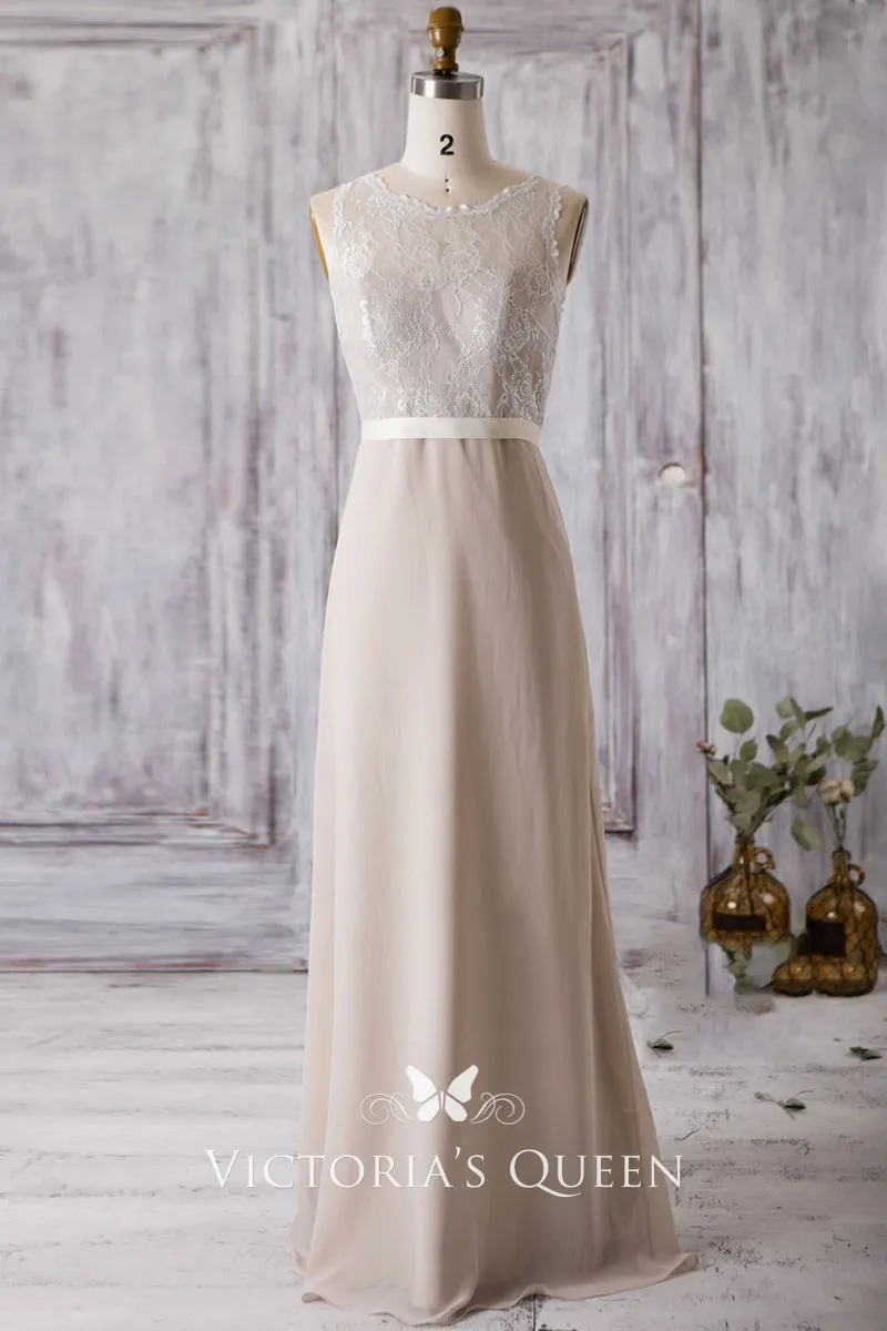 Champagne Chiffon And Lace Sleeveless Bridesmaid Dress Vq Vintage Champagne Lace Wedding Dress