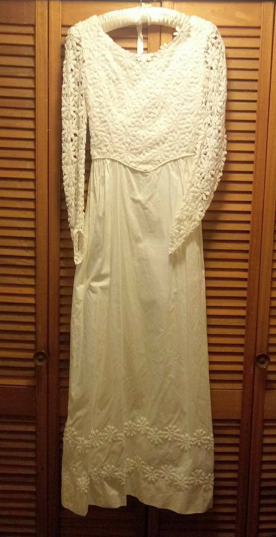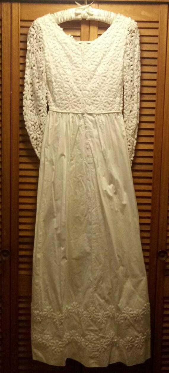 Vintage White 70s Hippie Daisy Flower Cotton Lace Empire Waist Vintage Cotton Lace Wedding Dress