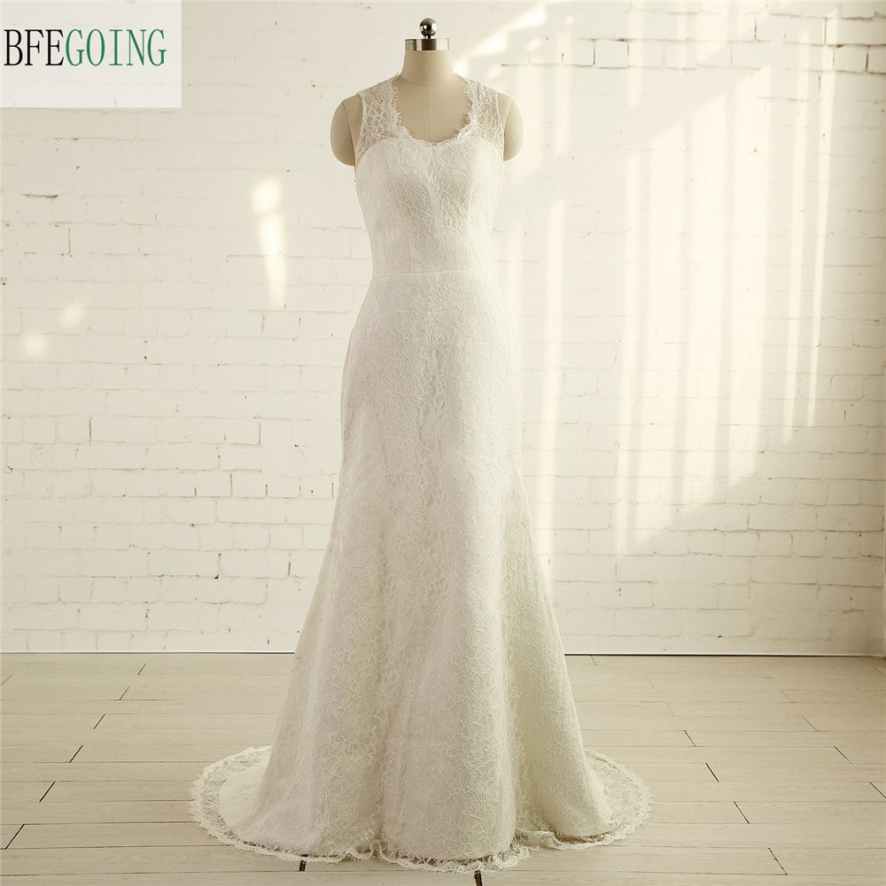 Sheath Vintage Ivory Real Photos Wedding Gown Halter Sheer Straps Vintage Ivory Lace Wedding Dress