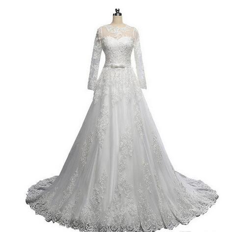 Vintage Long Sleeves Wedding Dresses For Bride Ball Gown Beaded Vintage Lace Ball Gown Wedding Dress