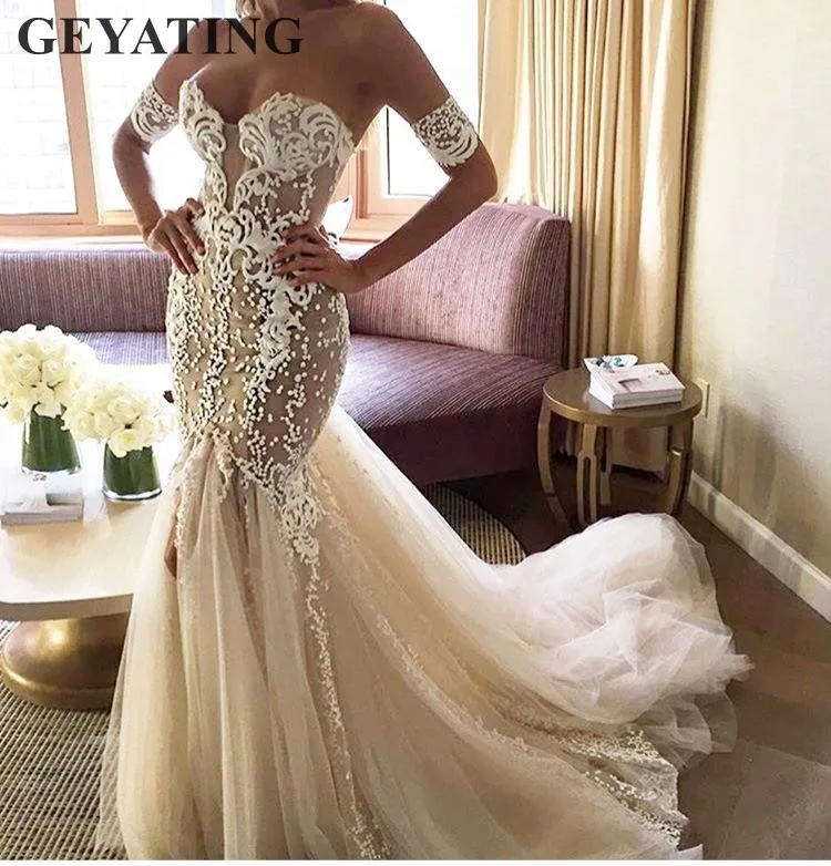 2020 Vintage Lace Mermaid Wedding Dress Off Shoulder Sweetheart Vintage Lace Mermaid Wedding Dress