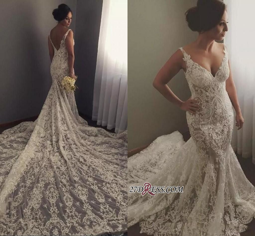 Sexy Mermaid Lace Wedding Dresses 2019 Deep V Neckline Low Back Vintage Low Back Wedding Dresses