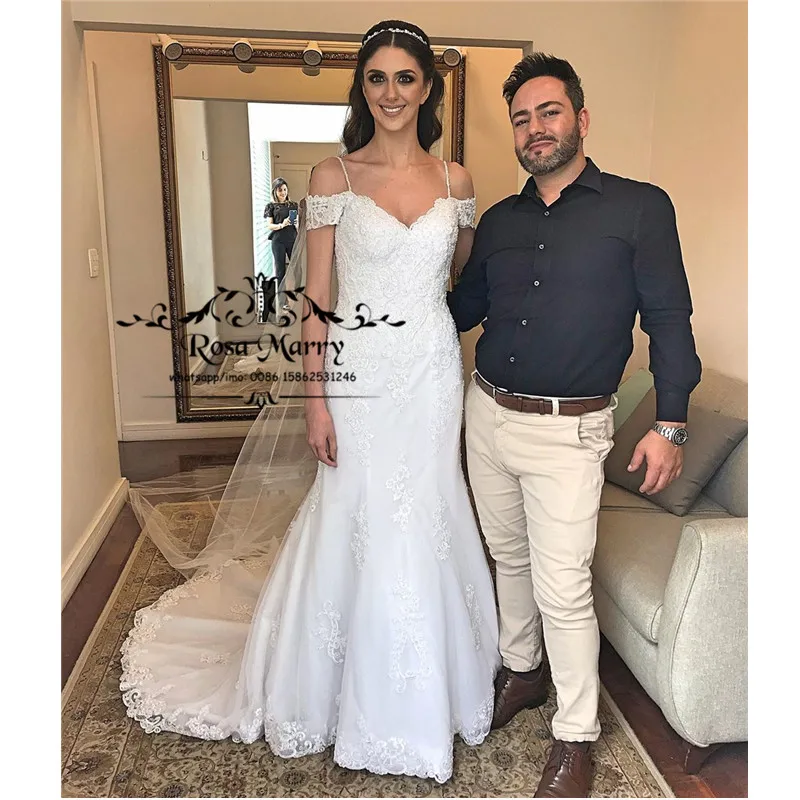 Mermaid Wedding Dress 2019 V Neck Backless Applqiued Lace Bride Vintage Mermaid Style Wedding Dresses