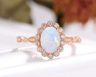 Amazon Com Opal Enagegement Ring Rose Gold Opal Engagement Ring Vintage Opal Wedding Ring Antique Opal Engagement Ring Platinum Opal Promise Ring Handmade Vintage Opal Wedding Rings