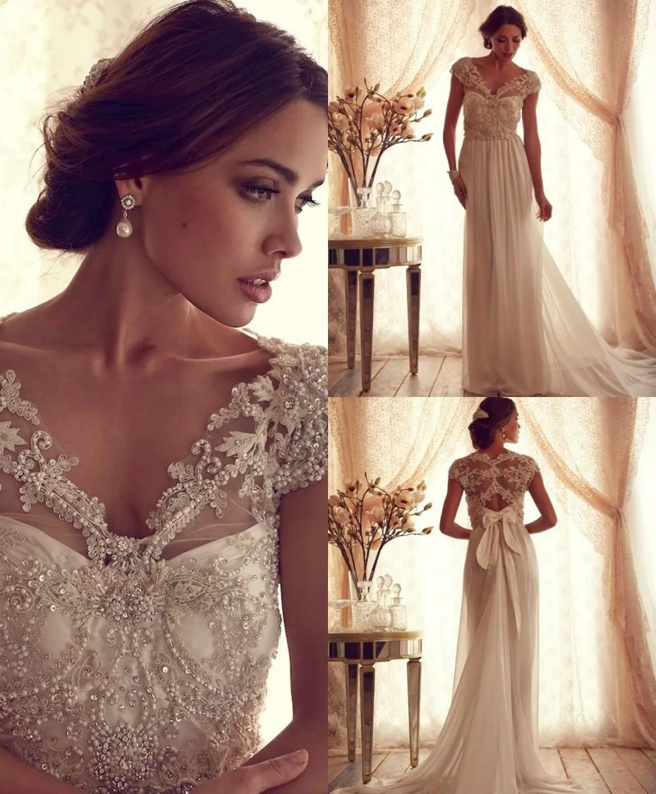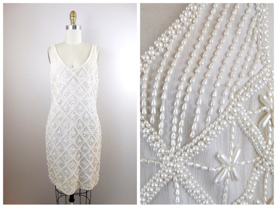 Bohemian Pearl Beaded Silk Skirt Wedding Dress Modwedding Vintage Pearl Wedding Dress