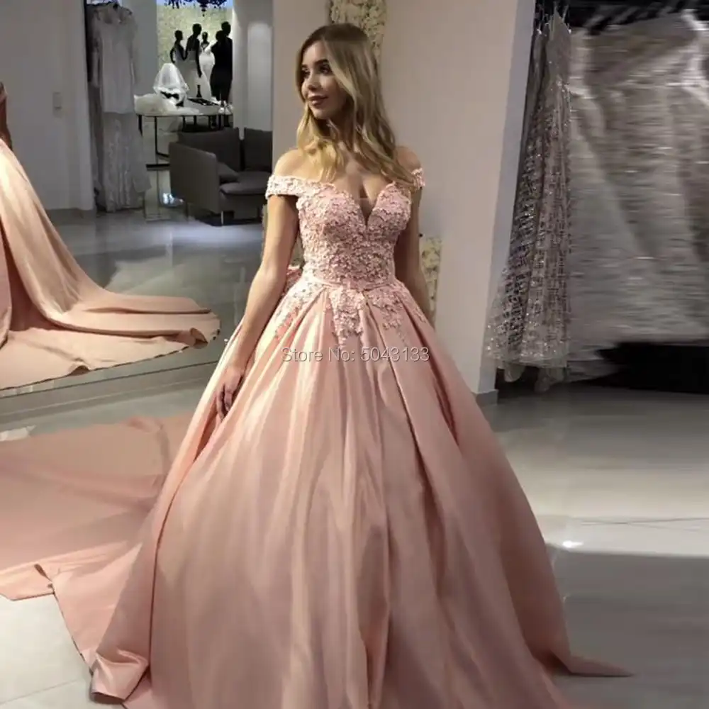 Vintage Applique Blush Pink Wedding Dresses Off The Shoulder Chapel Train Ball Gown Satin Wedding Formal Dress Corset Back Aliexpress Vintage Pink Wedding Dress