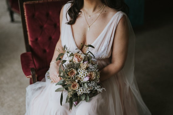Vintage Style Pale Pink Wedding Dress Designer Cape Dress Etsy Vintage Pink Wedding Dress