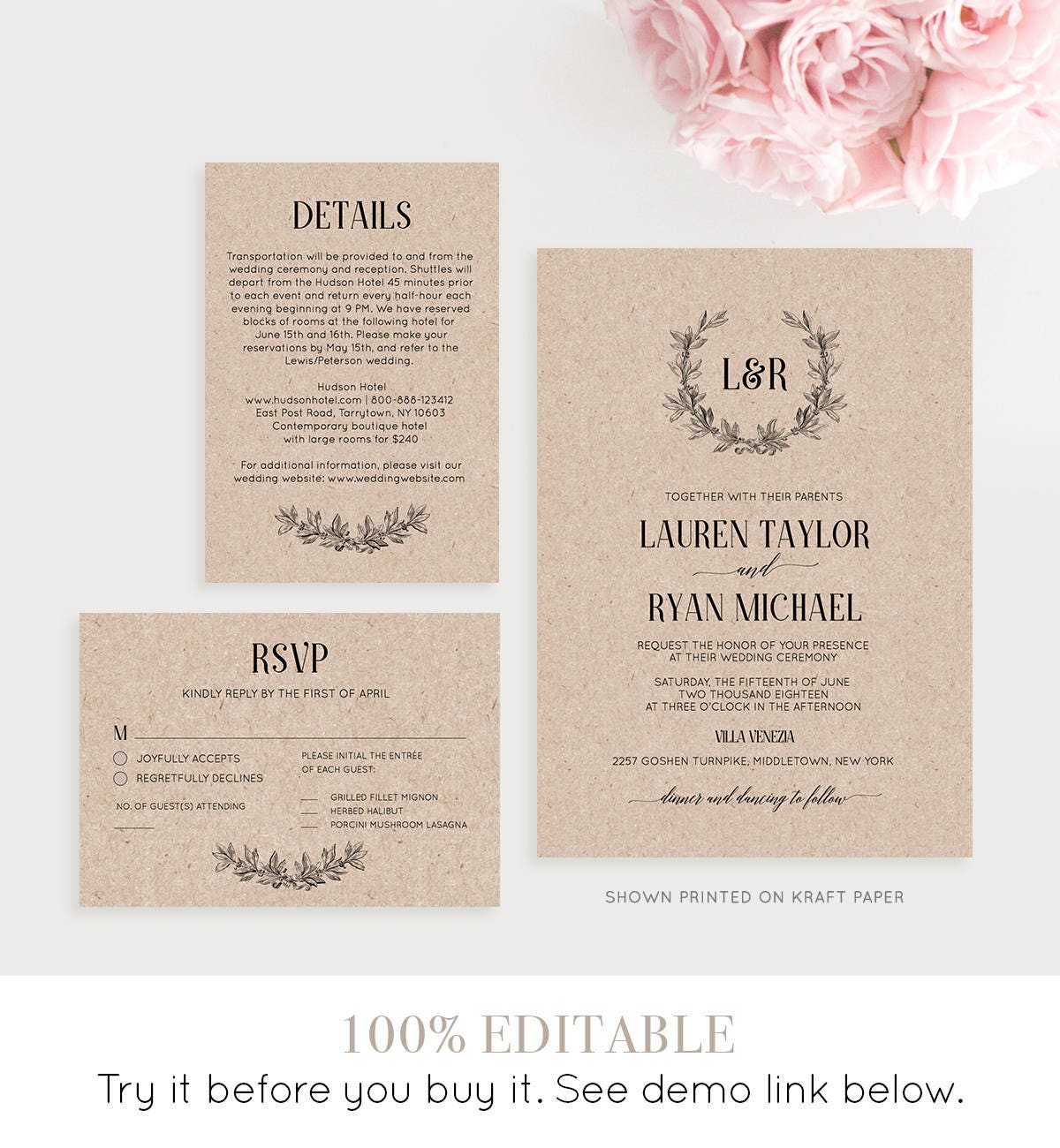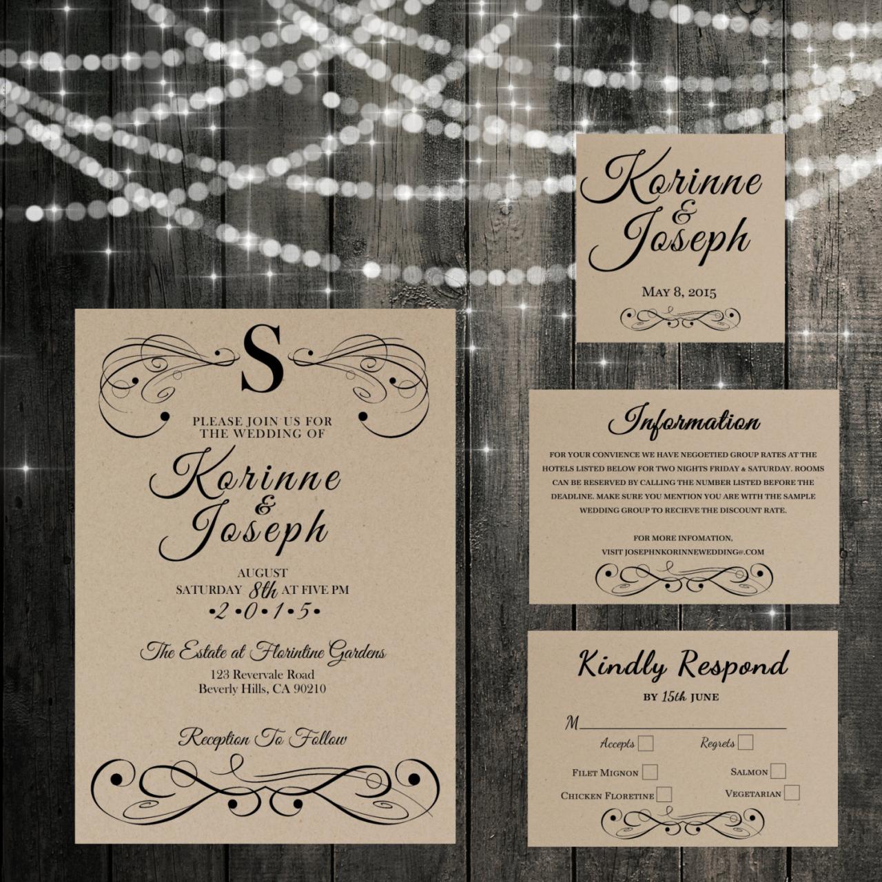 Vintage Wedding Invitation Printable Wedding Invitations Kraft Vintage Printable Wedding Invitations