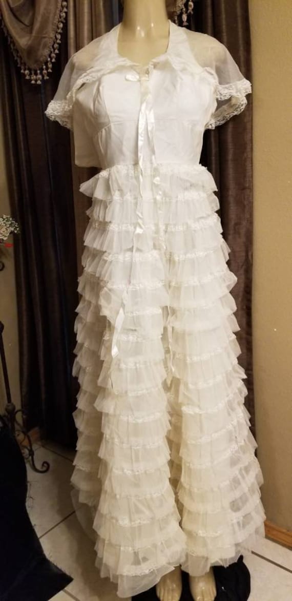 Vintage 1950 S Bridal Tulle Tiered Ruffle Prom Or Tea Length Vintage Ruffle Wedding Dress