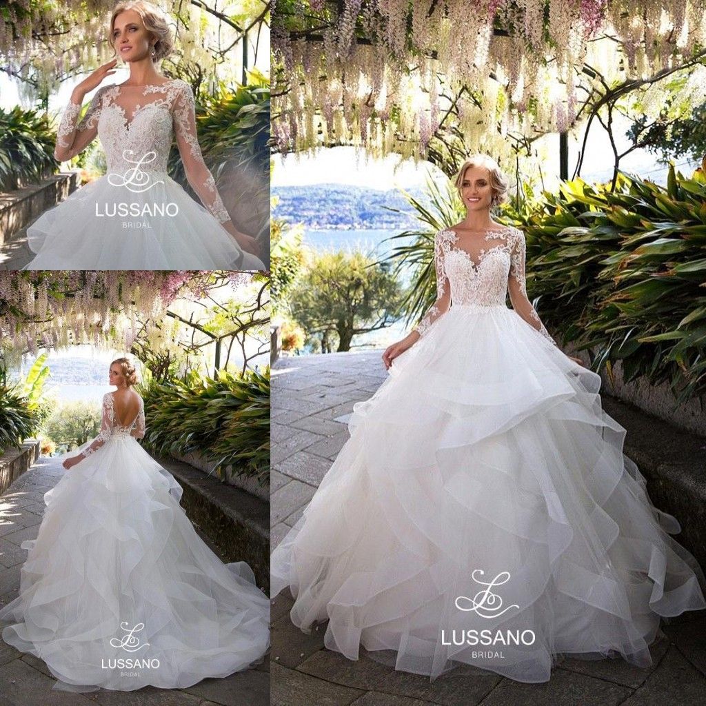 Discount Layers Ruffle Skirts Backless Wedding Dresses Illusion Vintage Ruffle Wedding Dress