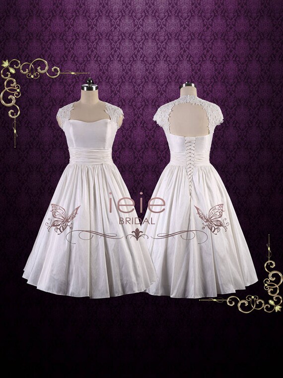 Retro Lace Wedding Dress With Lace Cap Sleeves And Half Open Etsy Vintage Style Lace Vintage Style Tea Length Wedding Dress