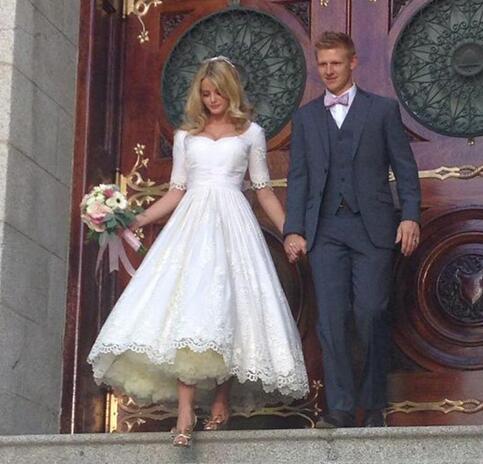 H0517 Vintage Inspired Modern Tea Length Sleeved Wedding Dress Vintage T Length Wedding Dresses