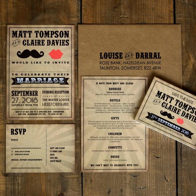 Moustache Lips Retro Wedding Invitation Set On Luxury Card Vintage Wedding Invitations Australia