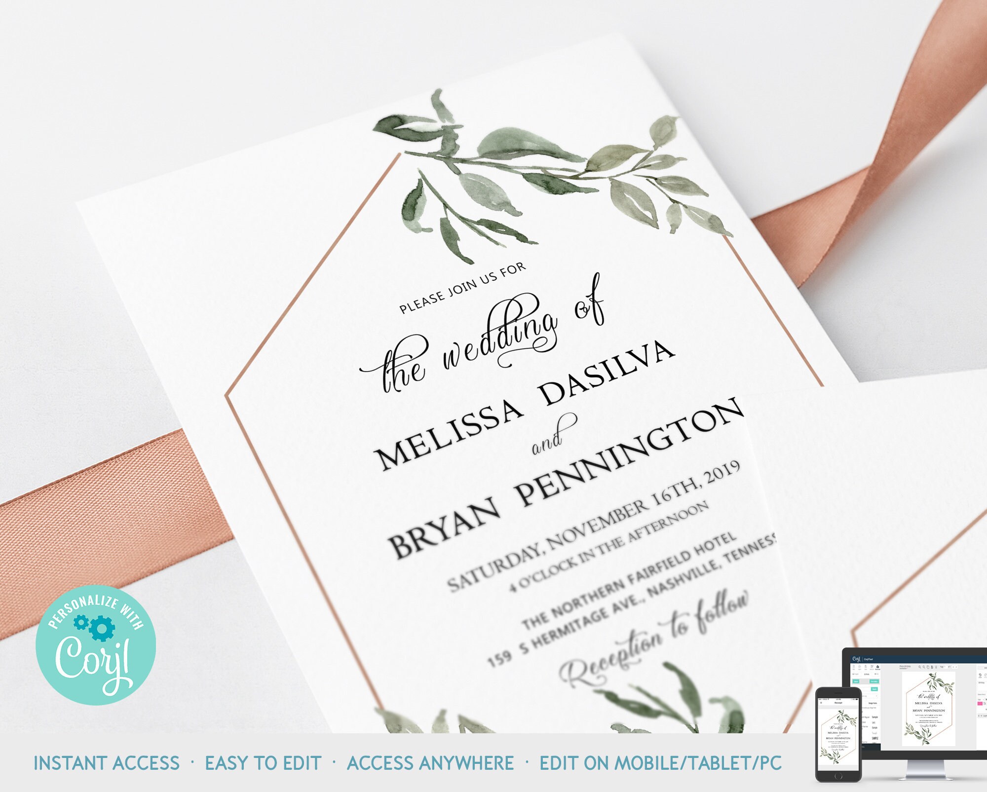 Greenery Classic Vintage Wedding Invitation Printable Template Etsy Vintage Wedding Invite Template