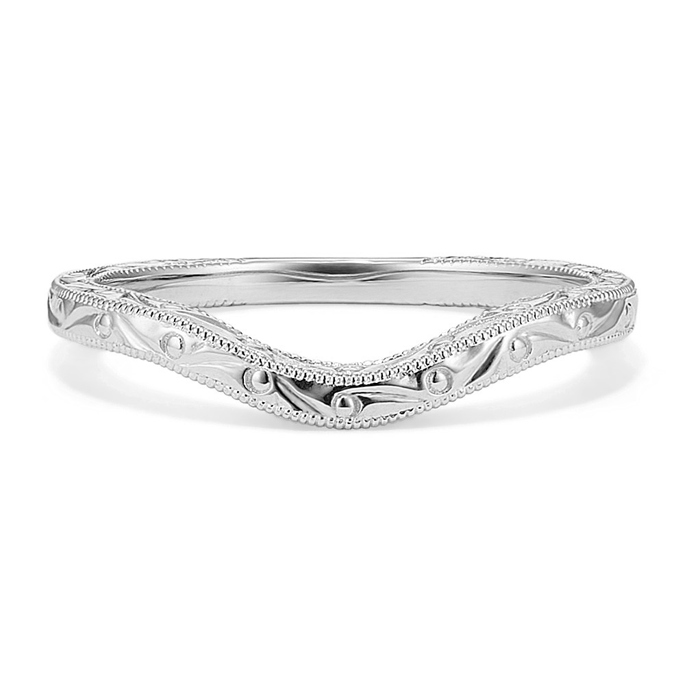 14k White Gold Unique Curved Vintage Plain Wedding Band Ring Vintage White Gold Wedding Band