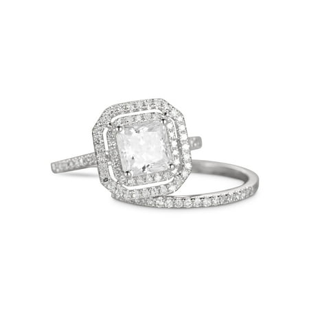 Jewel Zone Us Princess Cut White Cubic Zirconia Wedding Ring Set In 14k Rose Gold Over Sterling Silver Walmart Walmart Wedding Ring Sets