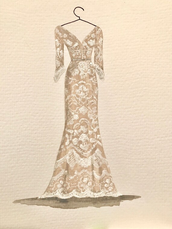 Custom Wedding Dress Illustration Using Mixed Etsy Watercolor Wedding Dress Illustration