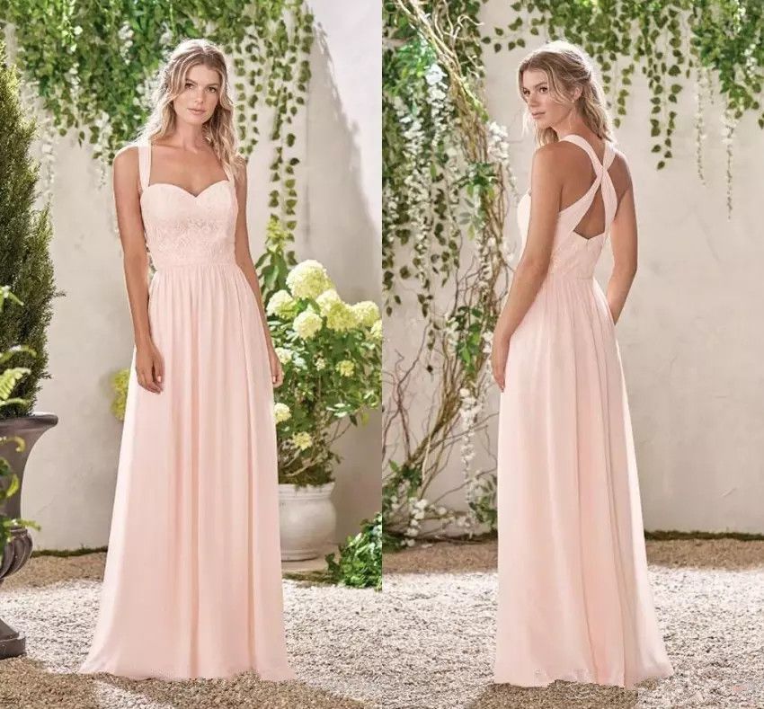 Baby Pink Chiffon Lace Bridesmaid Dresses Sweetheart A Line Wedding Baby Pink Bridesmaid Dresses