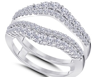 Affy 1 00 Carat Ctw Round Cubic Zirconia Anniversary Wedding Wedding Band Guard Double Ring