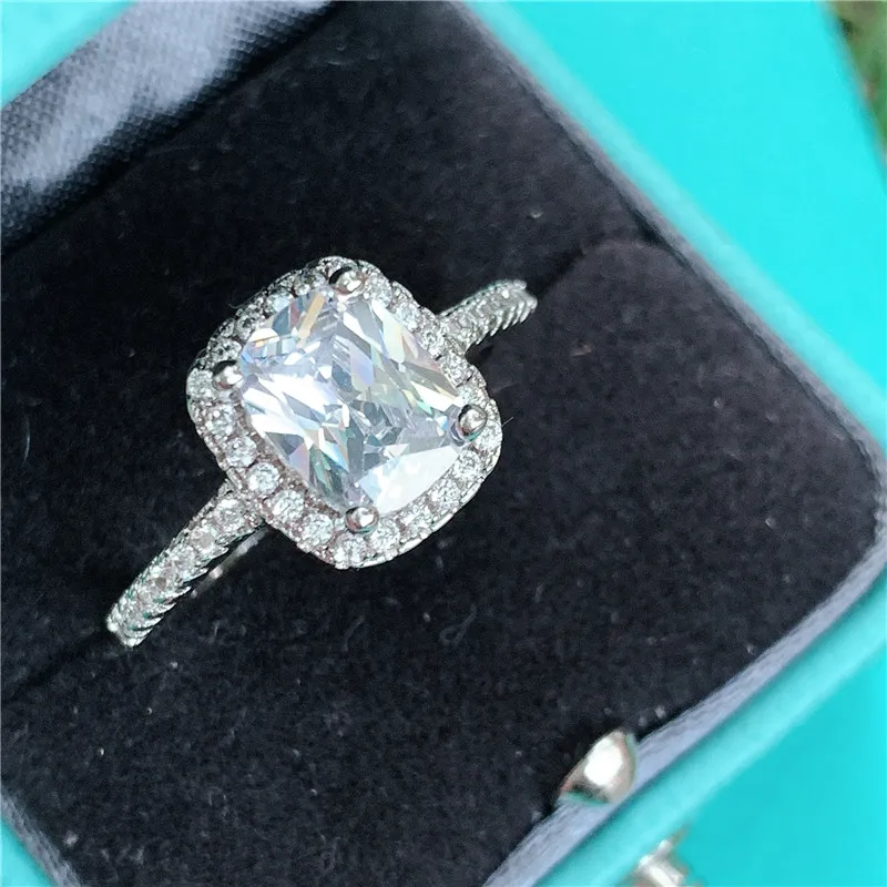 Choucong Female Statement Ring Cushion Cut 8mm Aaaaa Cz 925 Wedding Bands For Cushion Cut Rings