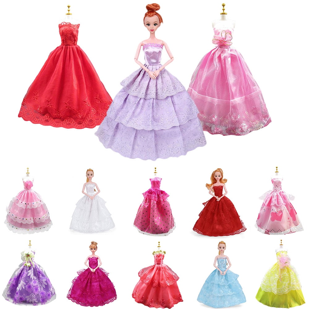 10 Pack Barbie Doll Clothes Handmade Wedding Dresses Party Gown Wedding Barbie Doll Dress Set