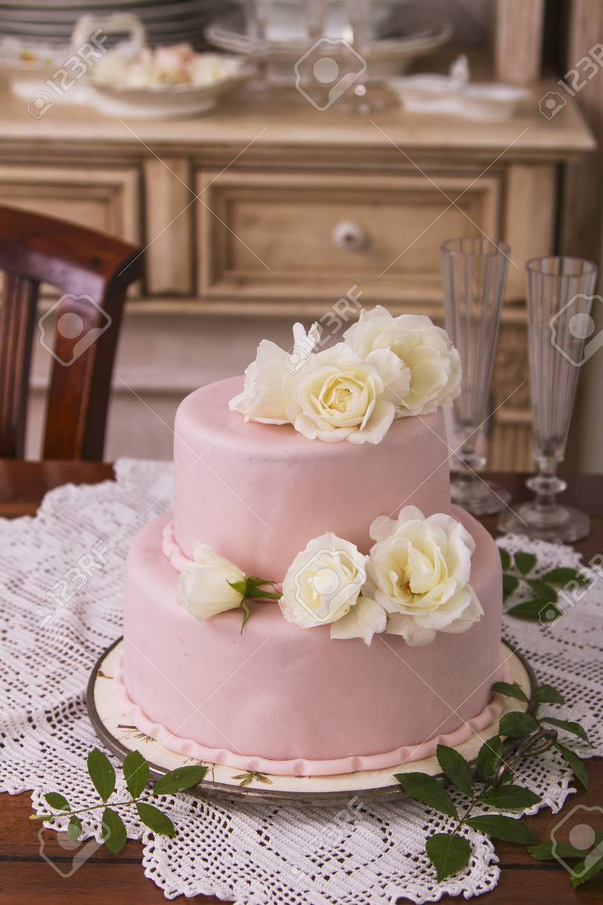 Five Tier Round White Wedding Cake With White Roses As Second And Wedding Cake White Roses