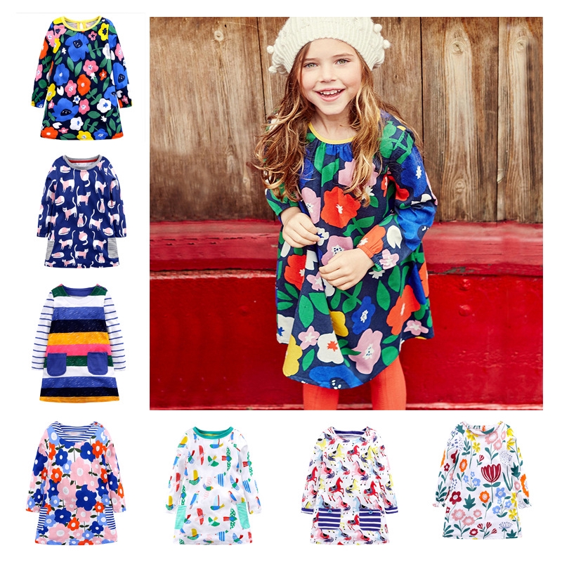Kids Casual Dresses For Girls Cotton Long Sleeve Girls Dress Flower Print Princess Dress Girl Dresses Wedding Clothes Shopee Singapore Wedding Casual Dress For Girls