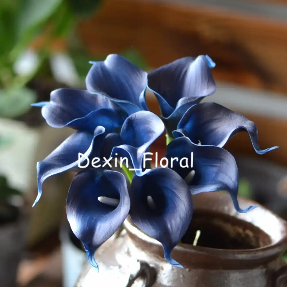 Navy Blue Calla Lilies Real Touch Flowers Silk Bridal Bouquets Bridesmaids Bouquets Wedding Centerpieces Artificial Flowers Touch Flower Real Touch Flowersblue Calla Lilies Aliexpress Wedding Centerpieces Blue