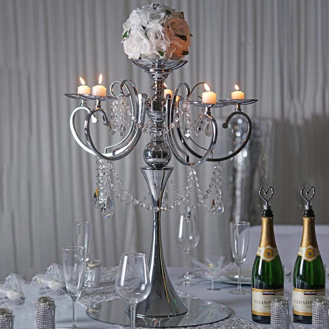 Amazon Com Efavormart 27 5 Tall Silver Metal Candelabra Chandelier Votive Candle Holder Wedding Centerpiece With Acrylic Chains Home Kitchen Wedding Centerpieces Candelabra