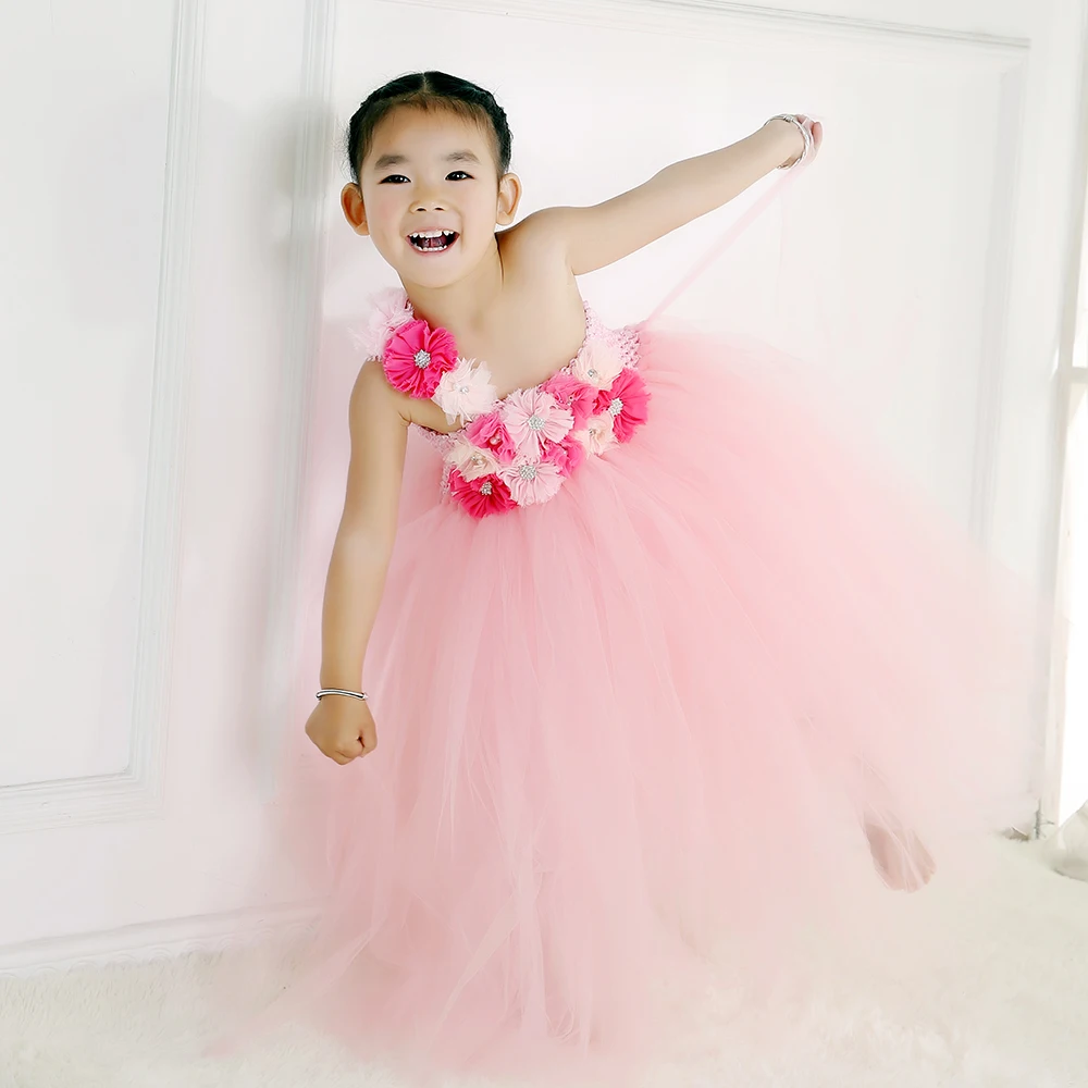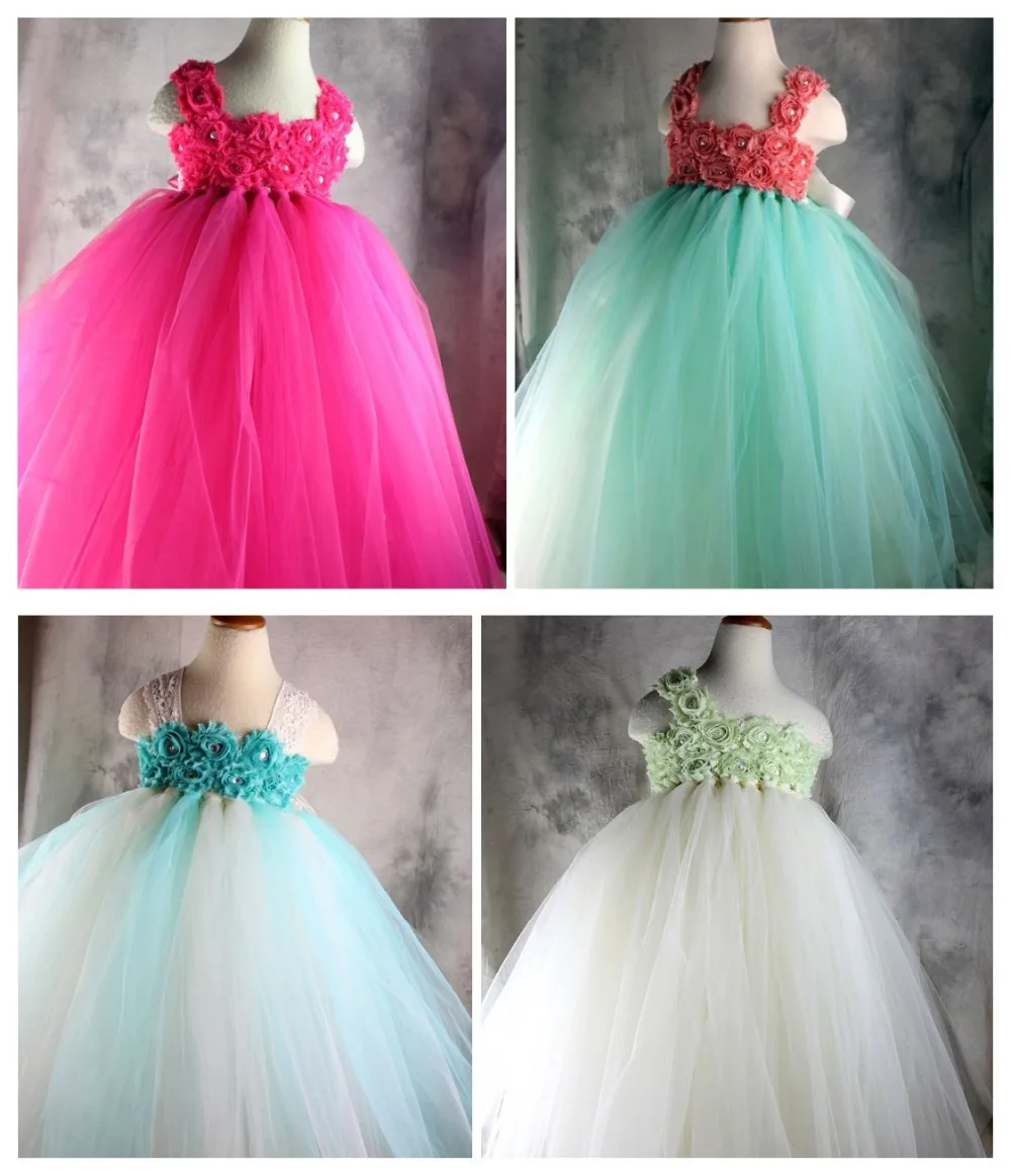 White Coral Floral Lace Bodice Tulle Flower Girl Dress Wedding Wedding Coral Flower Girl Dresses