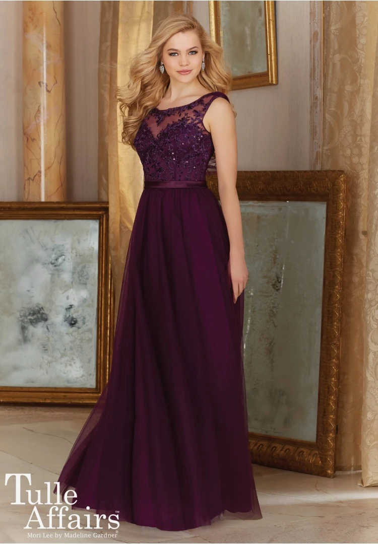Dark Purple Bridesmaid Dress Long Shawl Back Illusion High Neck Wedding Dark Purple Bridesmaid Dresses