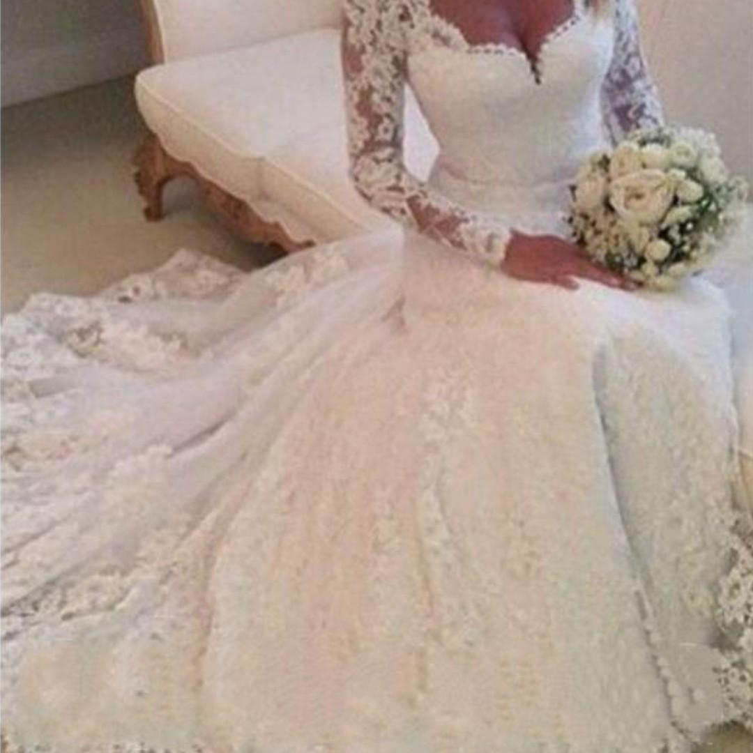 Deep V Neck Long Sleeves Lace Tulle A Line Wedding Dress Women S Fashion Clothes Dresses Skirts On Carousell Wedding Dress A Line Lace
