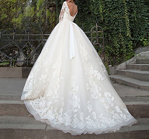 Charming Champagne See Through Wedding Dresses 2020 Ball Wedding Dress Backless Long Sleeve