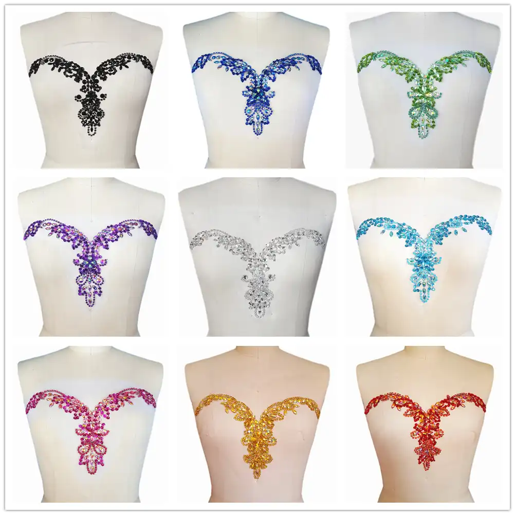 Bling Crystal Beaded Sew On 20x34cm Rhinestone Bridal Applique Wedding Dress Bling Accessories