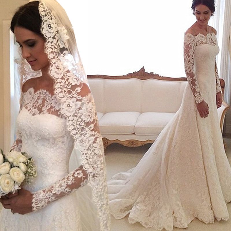 China Boat Neck Off Shoulder Half Sleeve Lace And Chiffon Bridal Wedding Dress Boat Neck Lace